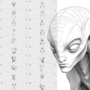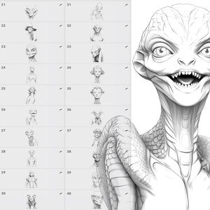 Donβt spend hours sketching complex alien figures from scratch β with 50 Reptiloid Stamps, youβll always have sci-fi designs ready to use.