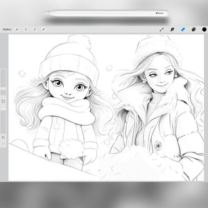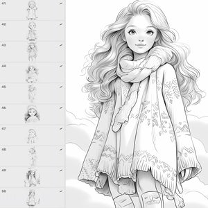 ✔️ Includes fashionable winter girls with scarves, coats, hats, and festive details