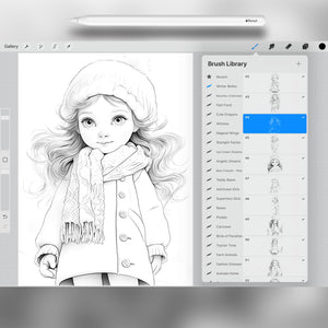 These Procreate winter girl brushes are perfect for holiday illustrations, seasonal character design, and decorative projects. With detailed stamps of fashionable girls in cozy outfits, you can easily create joyful winter compositions for digital painting, concept art, and storytelling projects.