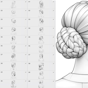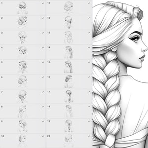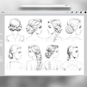 This stamp set is the ultimate tool for anyone who wants to illustrate braided hair, design stylish female characters, or quickly add detailed hairstyles to their artwork.