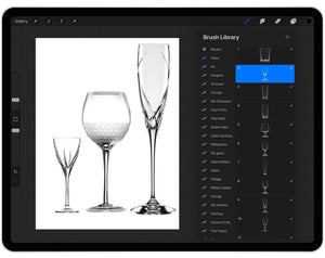 This Procreate stamp set is the ultimate tool for anyone who wants to draw drinkware, decorate still-lifes, practice reflections, or add elegant glass elements to their art.
