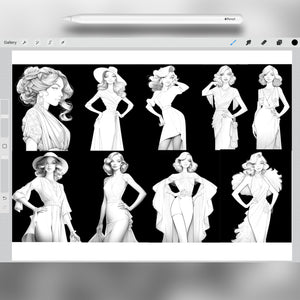 60 Gatsby Fashion Style Girls Procreate Stamp Brushes