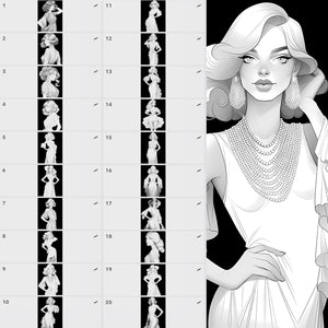 ✔️ Includes a chic collection of women in 1920s dresses and vintage poses, designed to enrich your art with timeless elegance and roaring twenties style