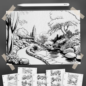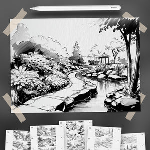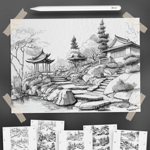 This Procreate background set is the ultimate tool for anyone who wants to depict tranquil bridges, koi ponds, and zen gardens without drawing every stone and leaf.