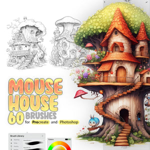 60 Mouse House Stamps Brushes for Procreate and Photoshop