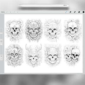 60 Sugar Skull Stamp Brushes for Procreate and Photoshop