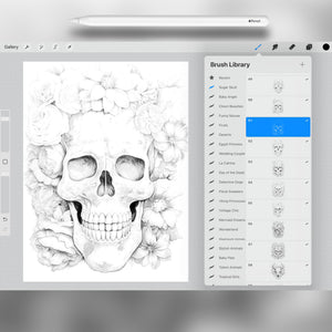 These Procreate sugar skull brushes are perfect for cultural art, decorative design, and symbolic illustration. With detailed stamps of skulls adorned with flowers and ornate elements, you can create striking artworks that celebrate tradition and creativity. Ideal for digital painting, posters, and tattoo-inspired designs.