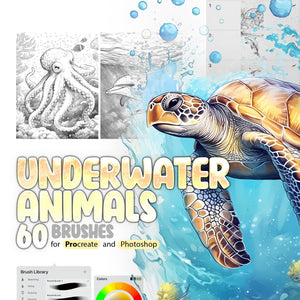 60 Underwater Animals Brushes for Procreate and Photoshop