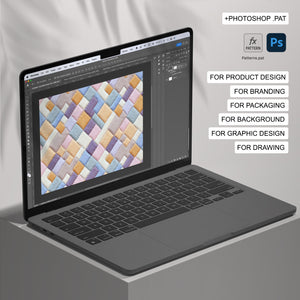 The patterns come in high-resolution JPEG and .PAT (Photoshop pattern) formats.