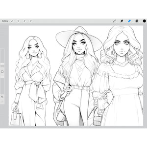 These Procreate bohemian fashion stamps are perfect for fashion design, concept art and illustration. With boho fashion brushes and free-spirited girl references, you can quickly create dreamy lookbooks, magazine spreads or hippie characters. Whether you’re drawing festival outfits, designing your own clothing line or illustrating romantic stories, these stamps will capture bohemian beauty.
