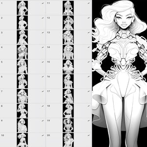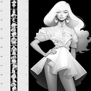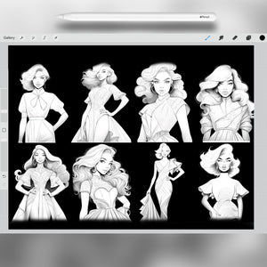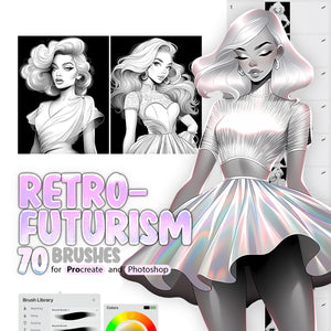 These Procreate retro-futurism fashion brushes are perfect for fashion art, character design, and concept projects. With detailed stamps of stylish women in futuristic outfits, you can easily create bold and imaginative illustrations for digital painting, concept art, and storytelling.