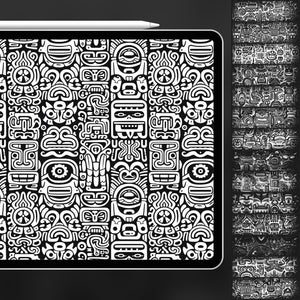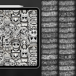 This Procreate pattern set is the ultimate tool for anyone who wants to bring Polynesian spirit, playful tiki creatures, and tribal energy into their digital art — all with perfectly repeatable designs.