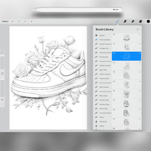 These floral sneaker brushes are perfect for fashion art, decorative projects, and modern illustration. With stylish shoe silhouettes infused with floral details, you can create bold, unique, and imaginative compositions. Whether for digital painting, fashion sketches, or personal projects, these brushes bring creativity and elegance straight to your canvas.