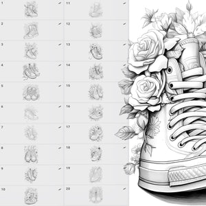 โ๏ธ Includes a fashionable collection of sneakers combined with floral designs, created to enrich your art with originality, style, and decorative charm