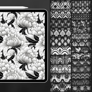 This Procreate pattern set is the ultimate tool for anyone who wants to capture the glamour of the 1920s — with repeatable geometric motifs, sunbursts, and ornamental lines that tile flawlessly across any canvas.