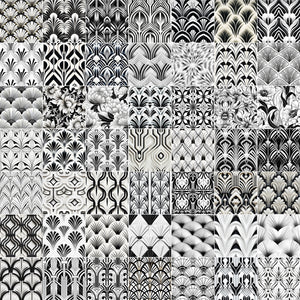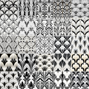 ✔️ Step into the Jazz Age: fan patterns, chevrons, sunburst rays, scallops, and elegant geometric repeats inspired by Art Deco design