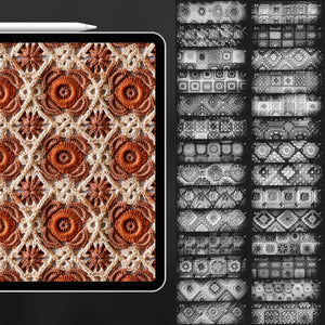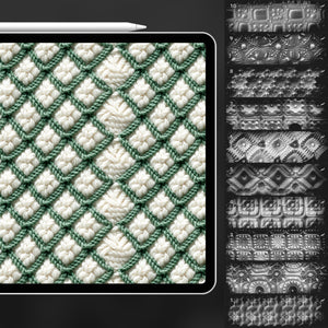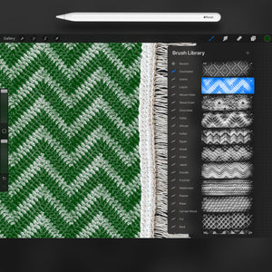 These Procreate crochet brushes capture the interlocking loops and cheerful colourwork of crochet textiles. They offer a charming, homespun feel that warms any composition.