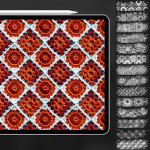 This Procreate texture set is the ultimate tool for anyone who wants to add multicolour crochet, granny squares and yarn patterns to their digital illustrations.