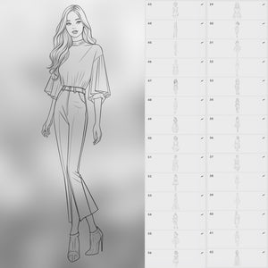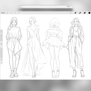 This glamorous stamp set is perfect for artists who want to draw elegant women, design fashion croquis, sketch stylish outfits, or add runway-ready poses to their art.