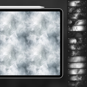 These Procreate smoke brushes swirl delicate vapor across your digital canvas. Whether you’re illustrating magical spells, designing moody scenes or adding atmospheric texture, these brushes help you achieve expressive effects. Perfect for artists searching for Procreate smoke texture brushes, fog patterns and vapor effects.