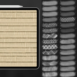 These Procreate woven fibre brushes capture the intricate patterns and tactile qualities of handwoven straw and rattan. They bring a warm, handcrafted feel to your digital creations.