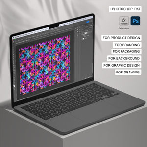 The patterns come in high-resolution JPEG and .PAT (Photoshop pattern) formats.