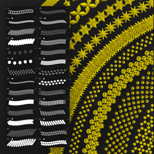 Don’t waste hours drawing individual sparkles — with 100 Sequins Shimmer Brushes you’ll always have graceful glimmer ready.